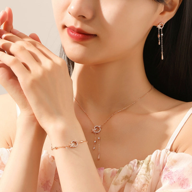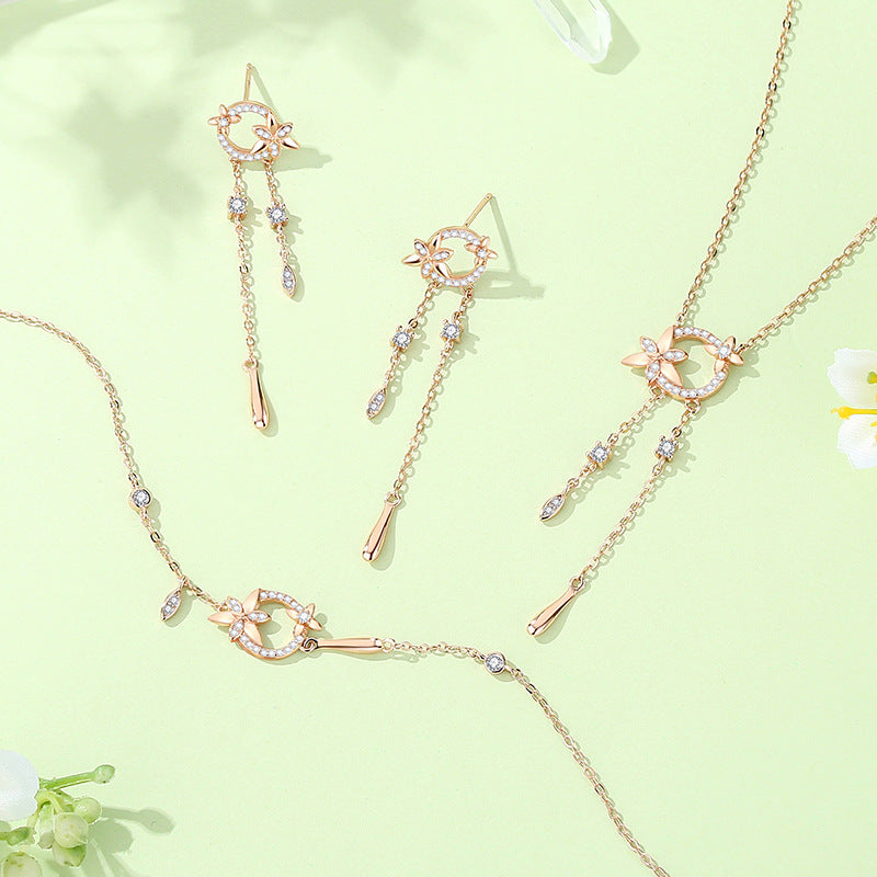 Sterling Silver Zircon Inlaid Wind Chime Garland Set