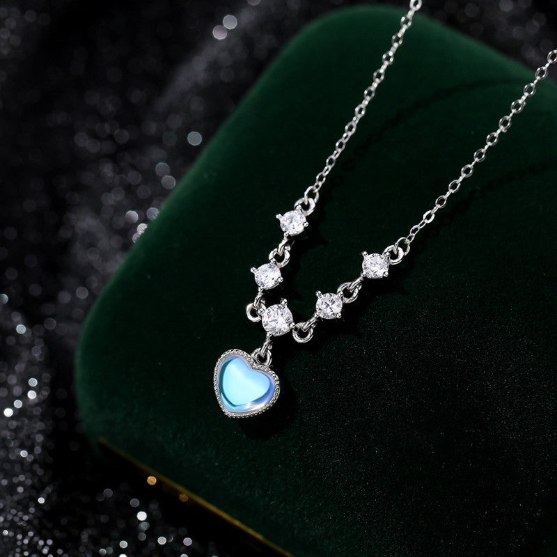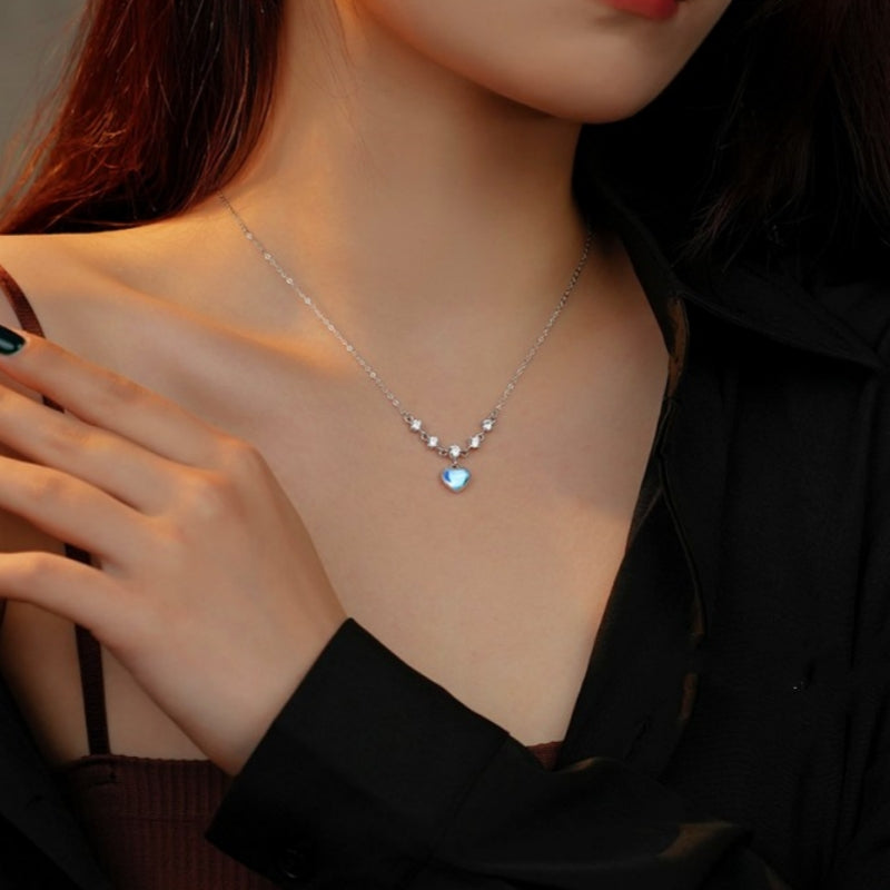 Sterling Silver Zircon Moonstone Heart Necklaces