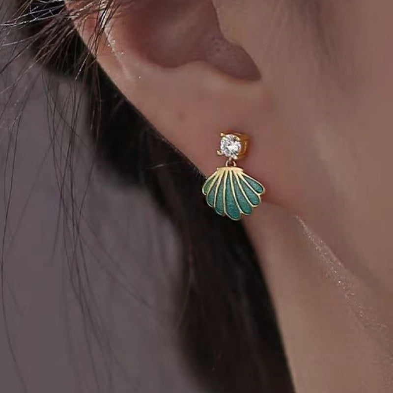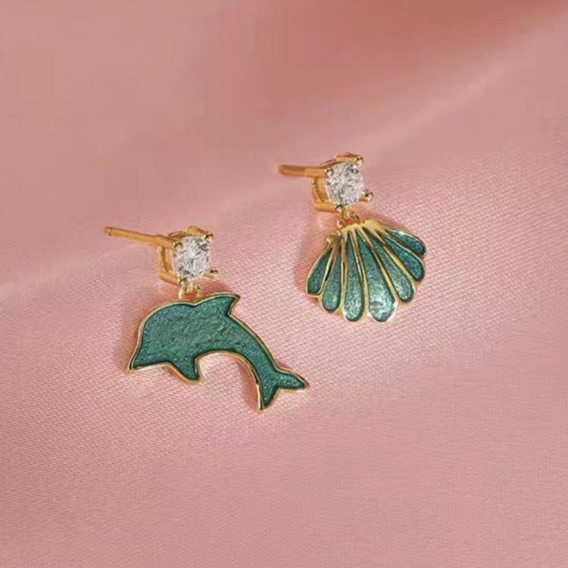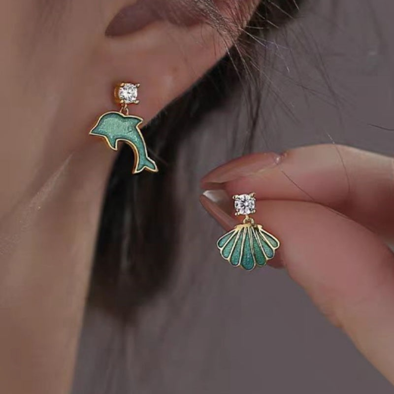 Sterling Silver Zircon Ocean Shell Dolphin Earrings