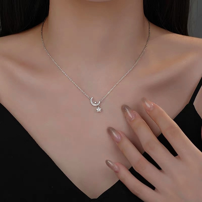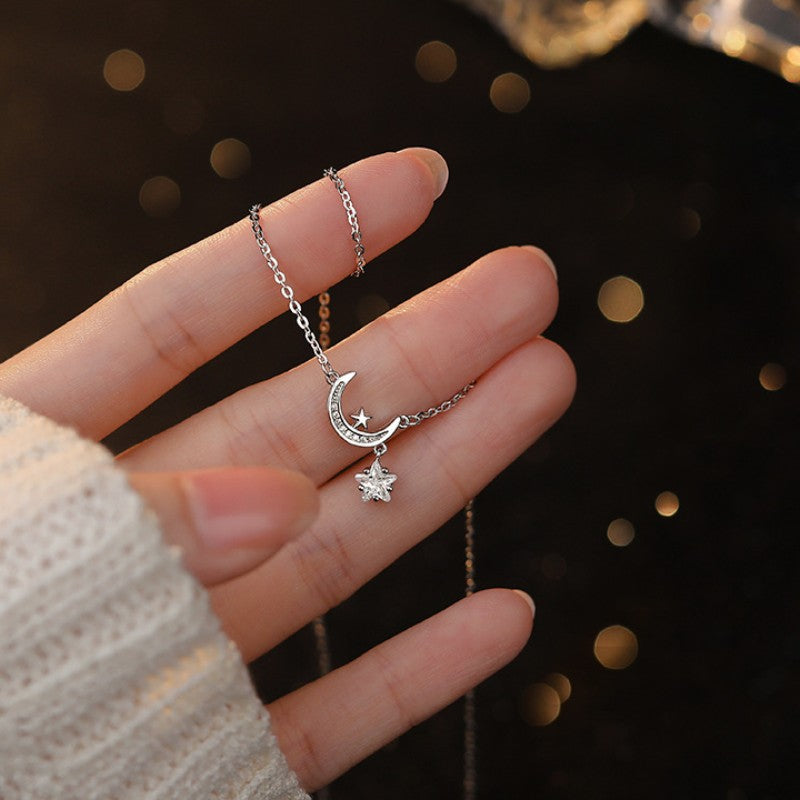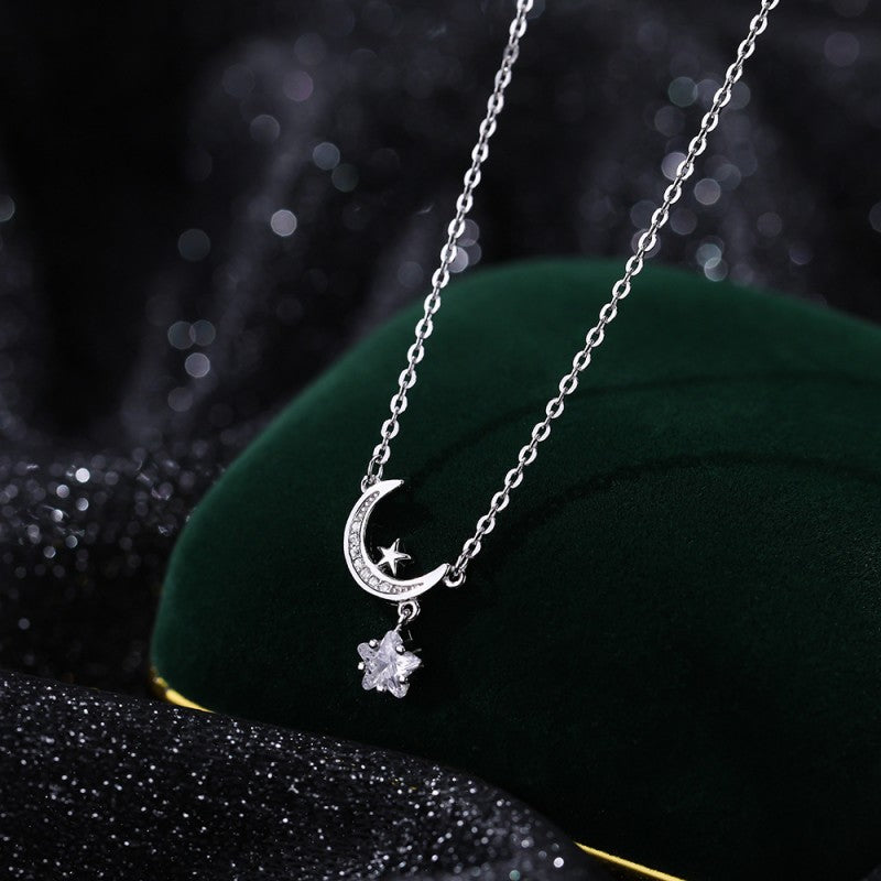 Sterling Silver Zircon Star And Moon Necklaces