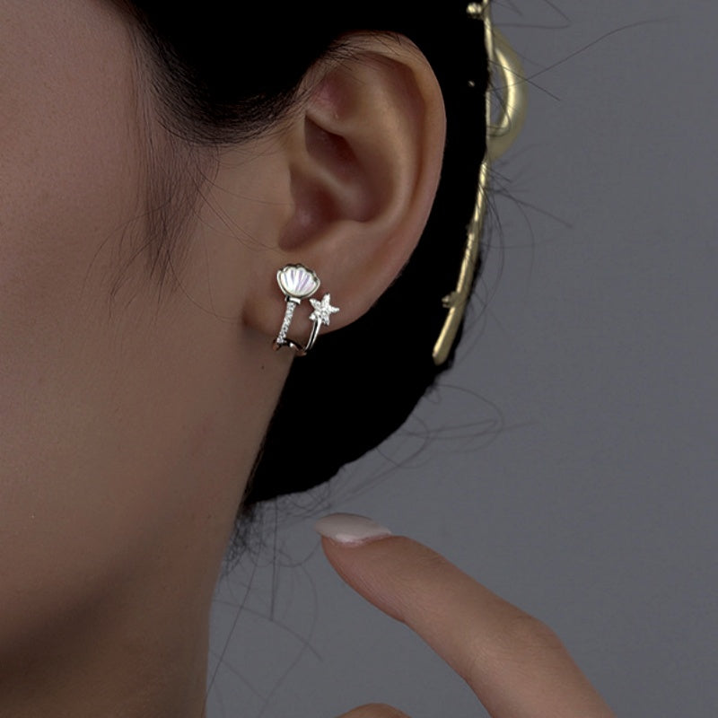 Sterling Silver Zircon Starfish Shell Stud Earrings