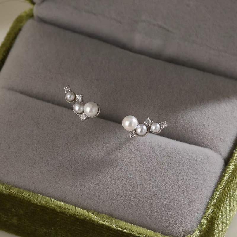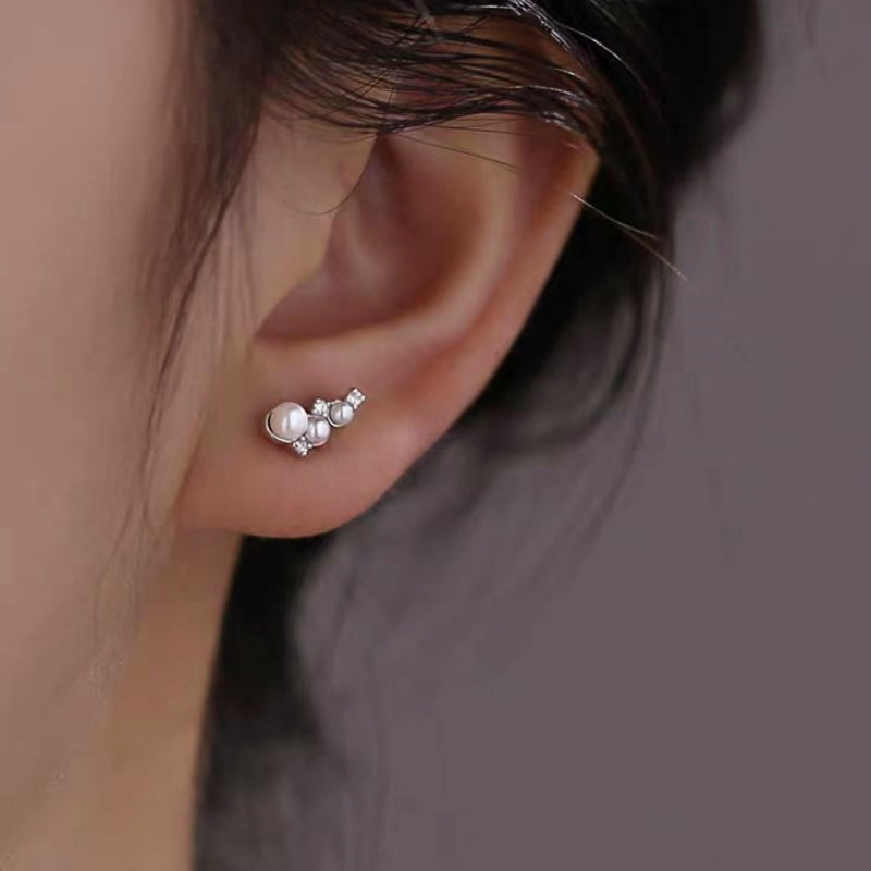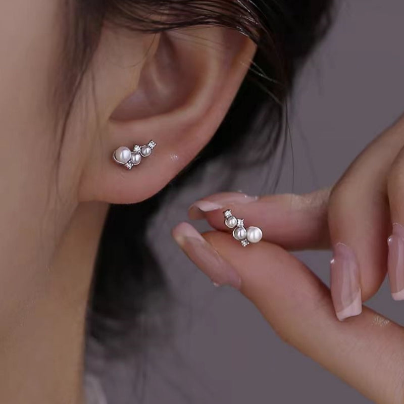 Sterling Silver Zircon Three Pearl Stud Earrings