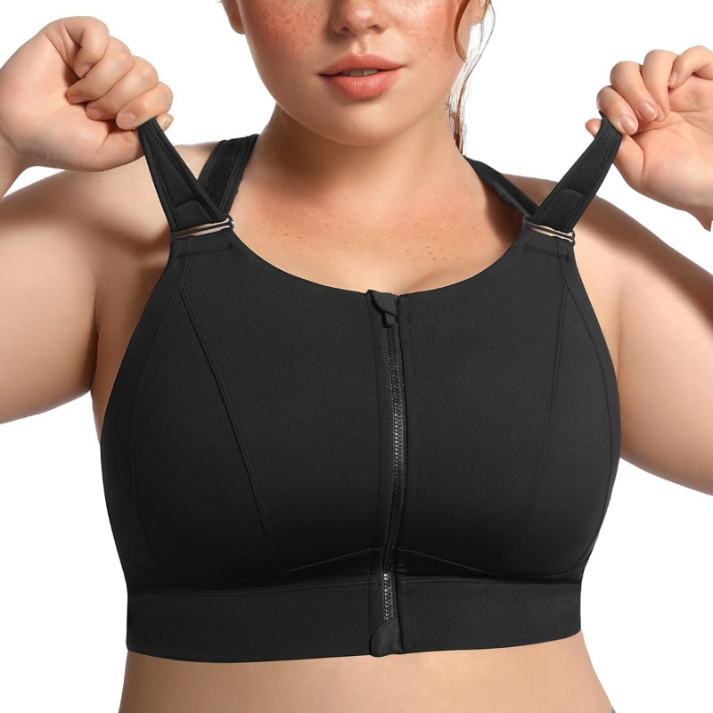 Zip Front Adjustable High Impact Sports Bras for Women